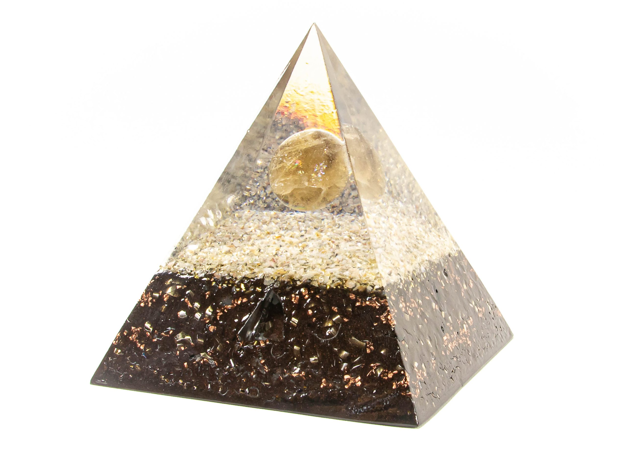 Auf vielseitigen Wunsch fertige ich alle Isis-Pyramiden-M auch in der L-Version. So kannst du deine Pyramide mit deinem Lieblingsstein in beiden Pyramiden Grössen wählen. Den kraft- und lichtvollen Citrin verwende ich in sämtlichen Produkten, hier steht er im Vordergrund.